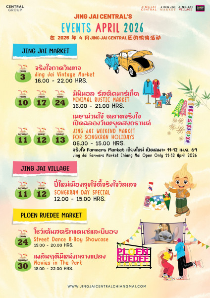 คลิกต้อนรับศักราชใหม่ของชาวล้านนา สนุกกับกิจกรรมพิเศษและอีเว้นต์ม่วนใจ๋ ตลอดเดือนเมษายน 2569 ที่ย่านจริงใจเซ็นทรัล Creative District จ.เชียงใหม่ ใ..