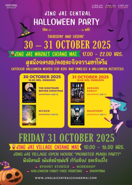 เตรียมตัวให้พร้อม! ฮาโลวีนนี้มาสนุกกันตลอดสองวัน ที่ย่านจริงใจเซ็นทรัล . วันพฤหัสบดีและศุกร์ที่ 30 - 31 ตุลาคม 2568 17.00 – 22.00..